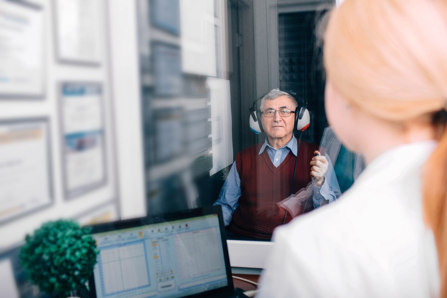 After your ears have been examined, you will undergo an auditory test likely involving a series of tones or voices at different frequencies presented to each ear separately.